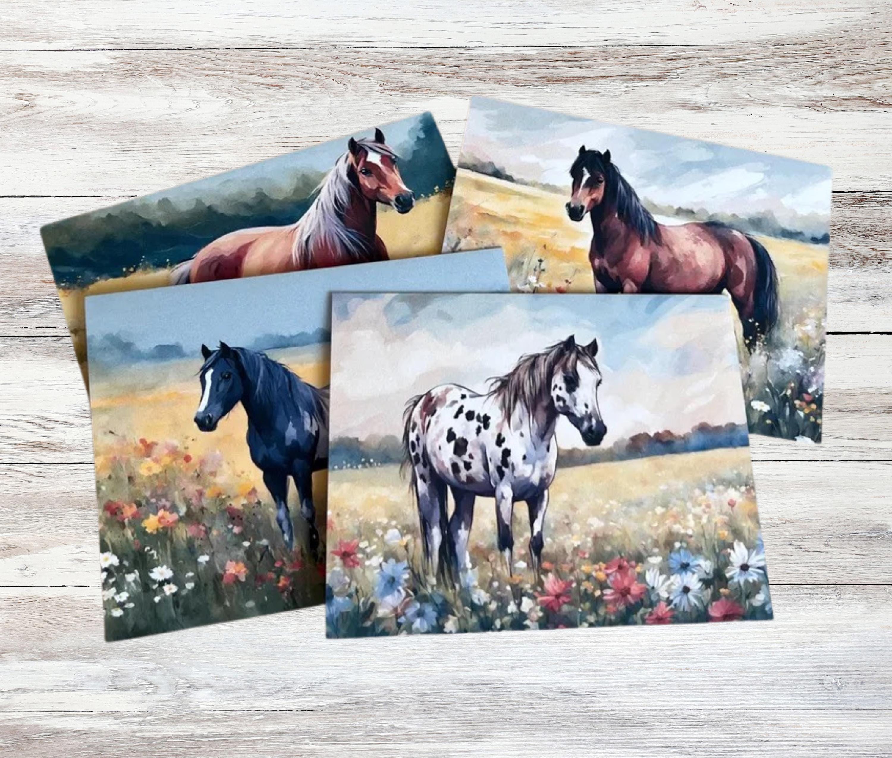 This printed greeting card featuring 4 different horse designs is perfect for birthday, thank you, sympathy, everyday note, or anytime you want to send a heartfelt message the old-fashioned way.