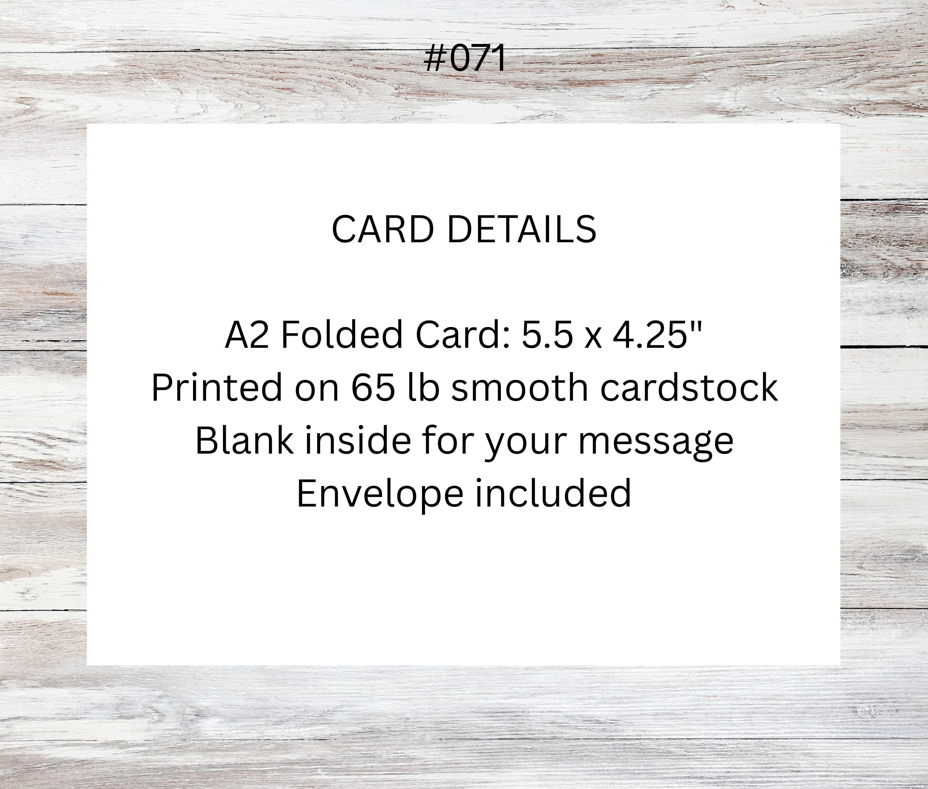 • A2 folded greeting card (4.25 x 5.5 inches)