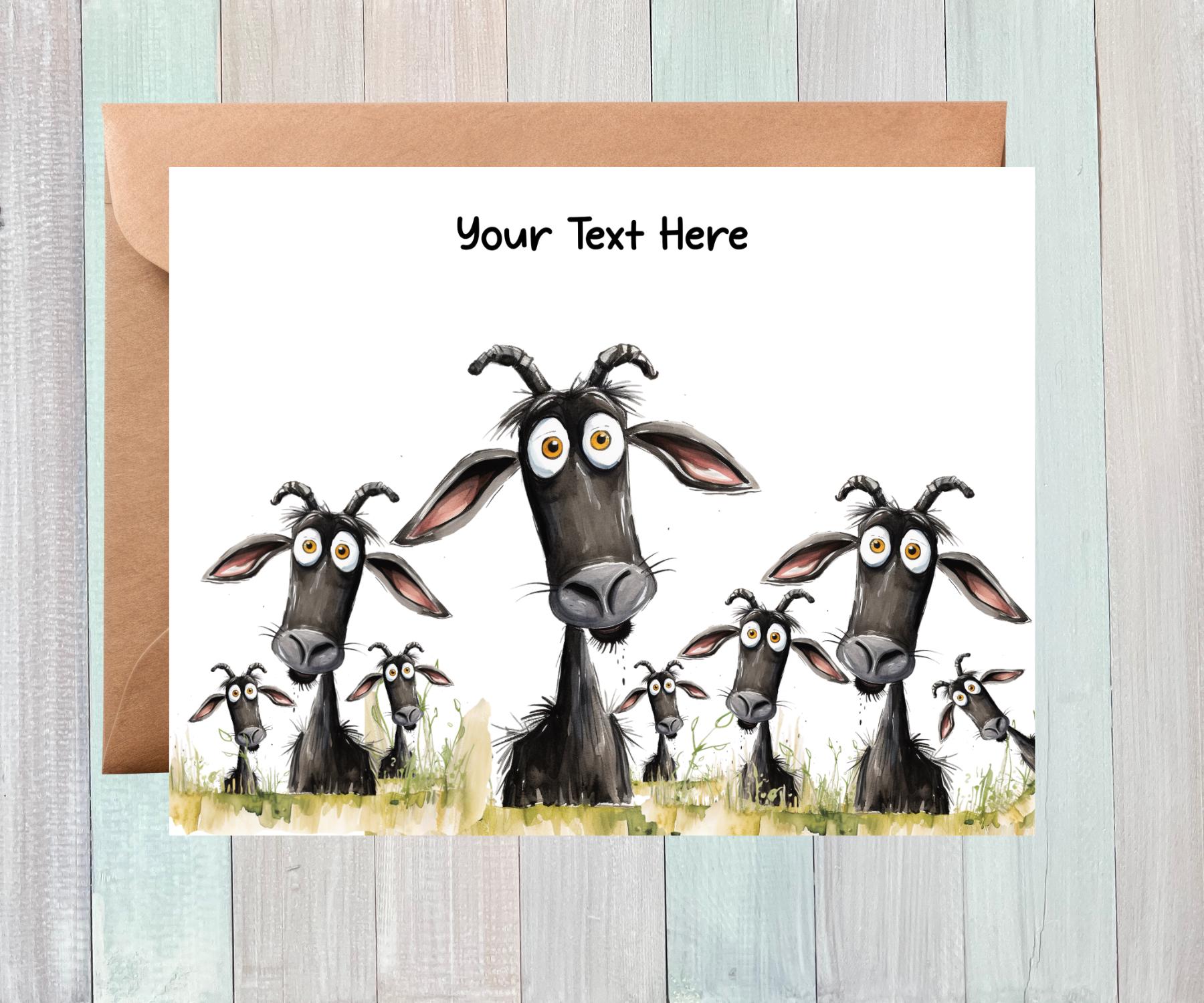 The perfect card for anyone who appreciates goats and their antics. This silly goat herd is sure to make someone smile. The inside is blank, giving you plenty of space for your personal message.