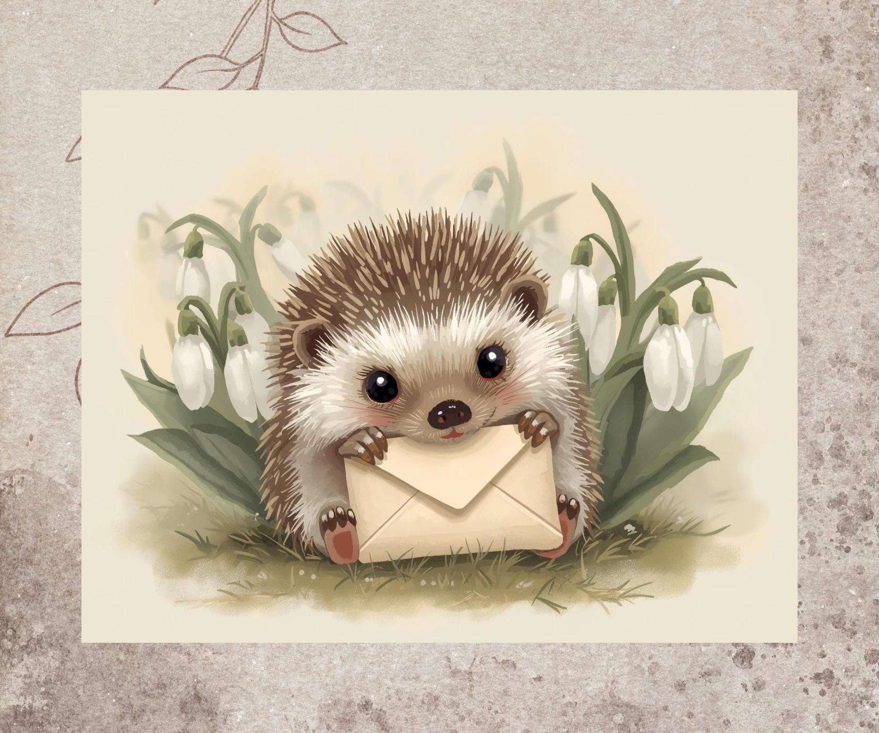 This sweet hedgehog holding a little letter is a gentle way to say thinking of you, sending love, or just because. Inspired by classic storybook illustrations and woodland charm, this card feels warm, comforting, and timeless. Perfect for encouragement, friendship, get-well wishes, or simply letting someone know they’re on your mindCard Details: