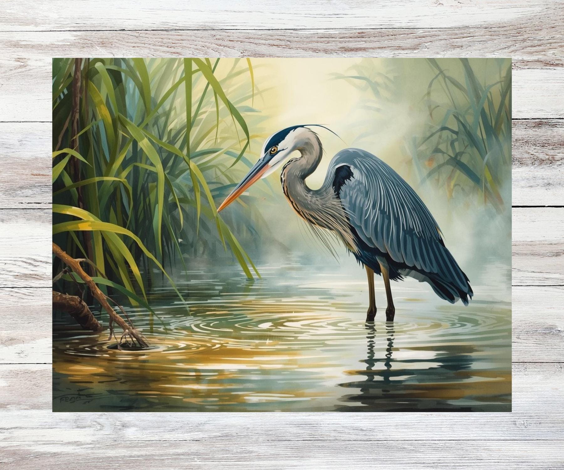 This printed greeting card features a majestic Great Blue Heron in a misty swamp - perfect for birthday, thank you, sympathy, everyday note, or anytime you want to send a heartfelt message the old-fashioned way.