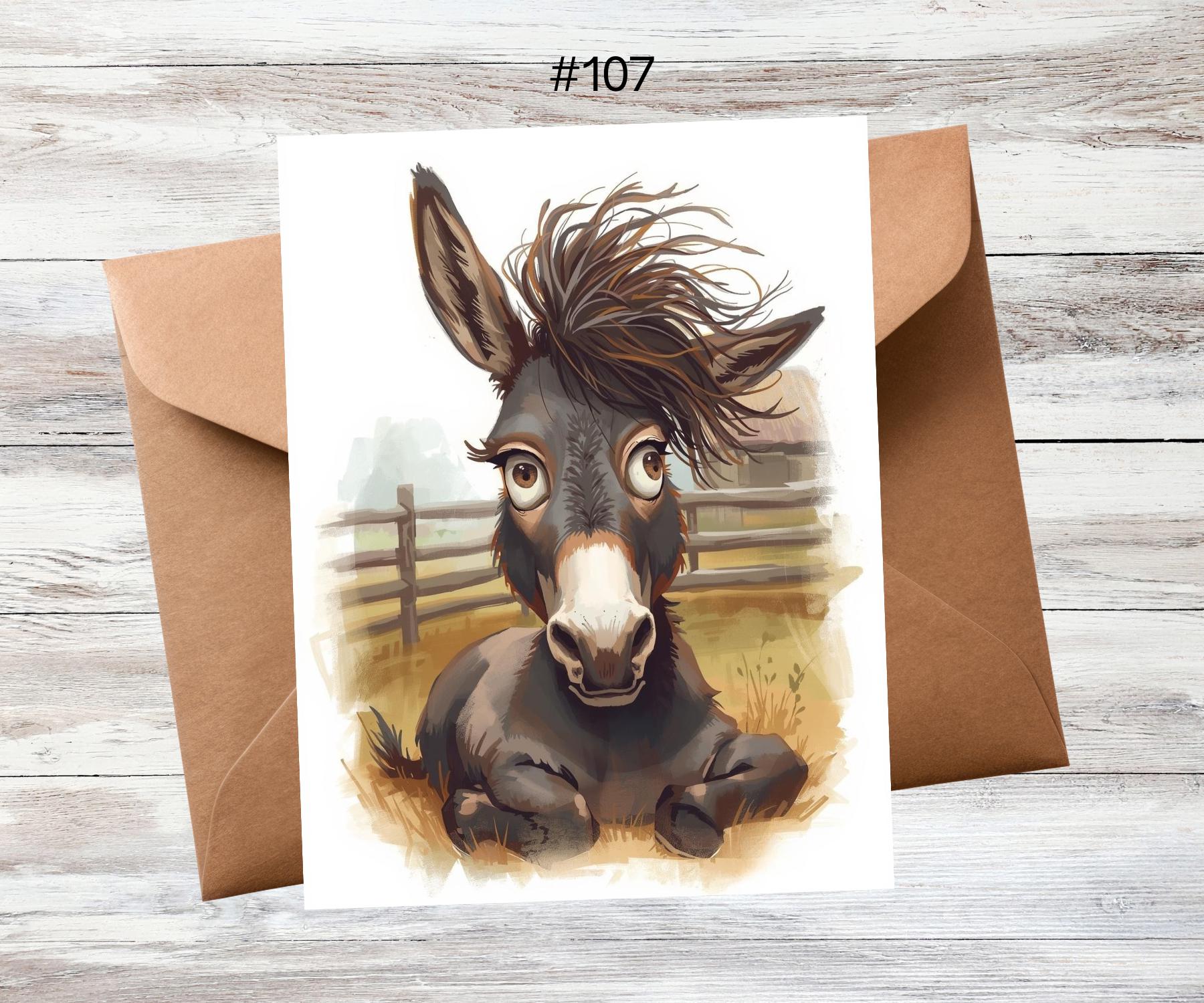 This printed greeting card featuring a whimsical little donkey is perfect for birthday, thank you, sympathy, everyday note, or anytime you want to send a heartfelt message the old-fashioned way.