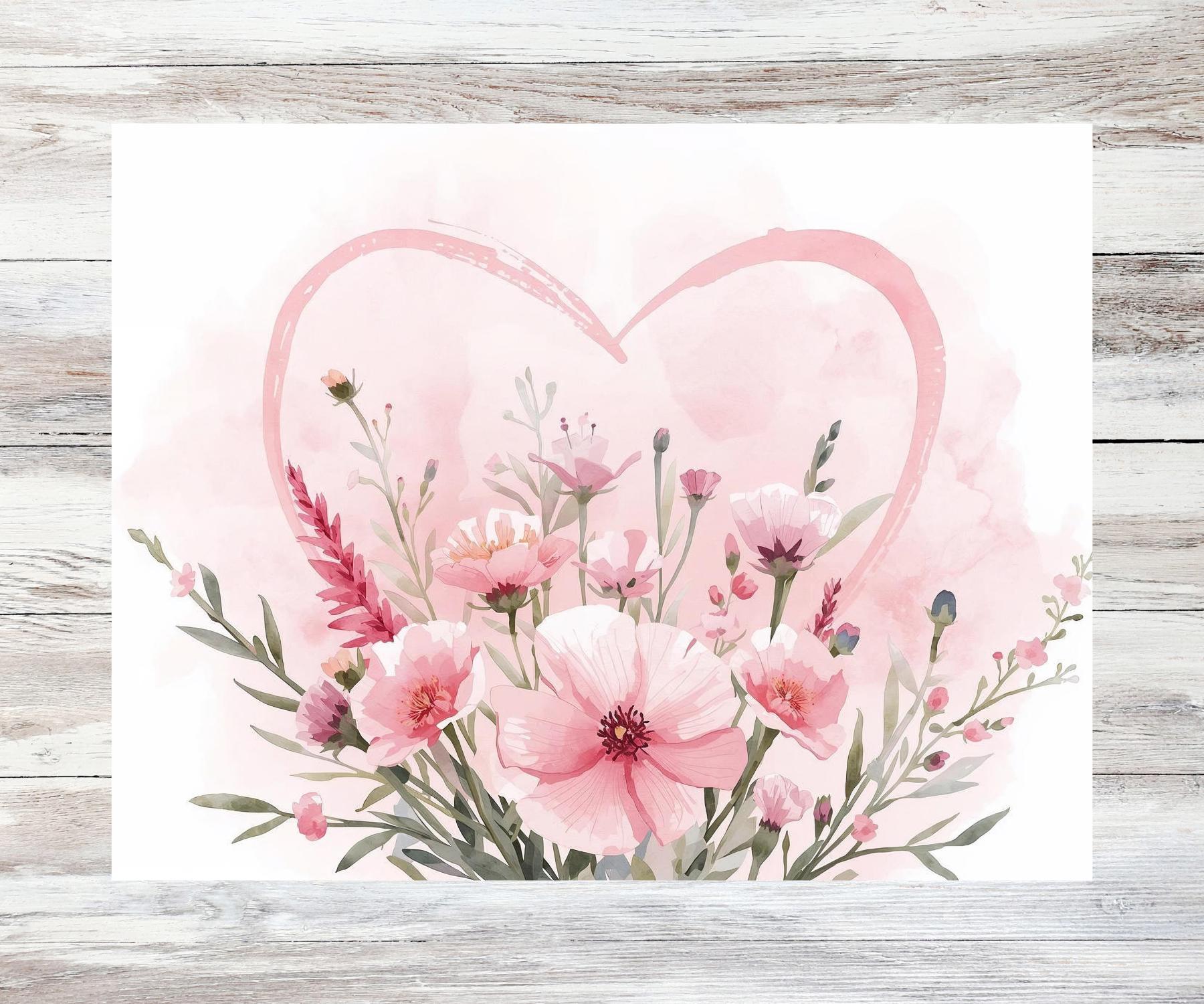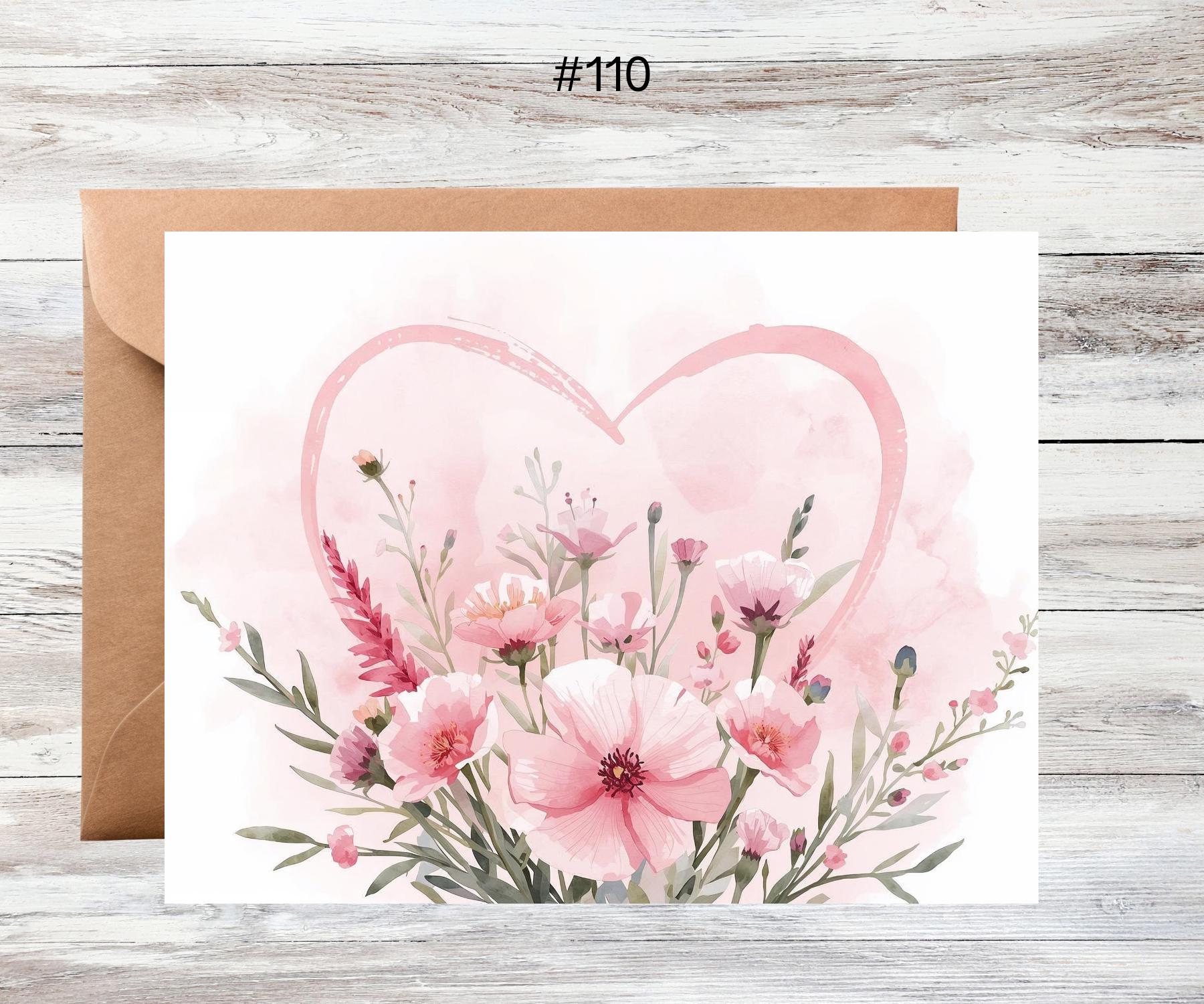This printed greeting card featuring pink flowers and heart makes a great Valentine, wedding or anniversary card - or simply a card to use when sending a note to someone you care about.