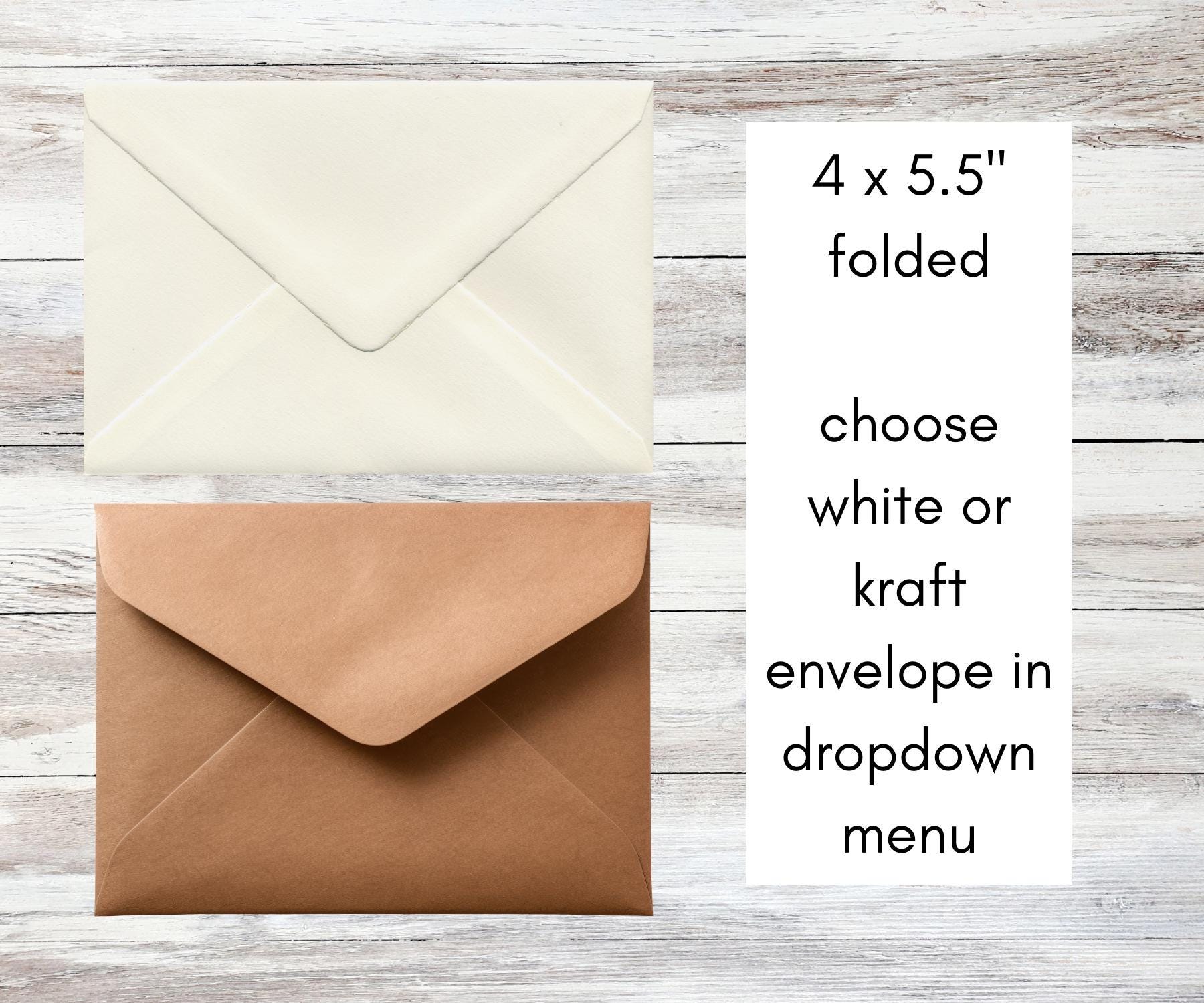 • Coordinating envelope included (you choose white or brown kraft)
